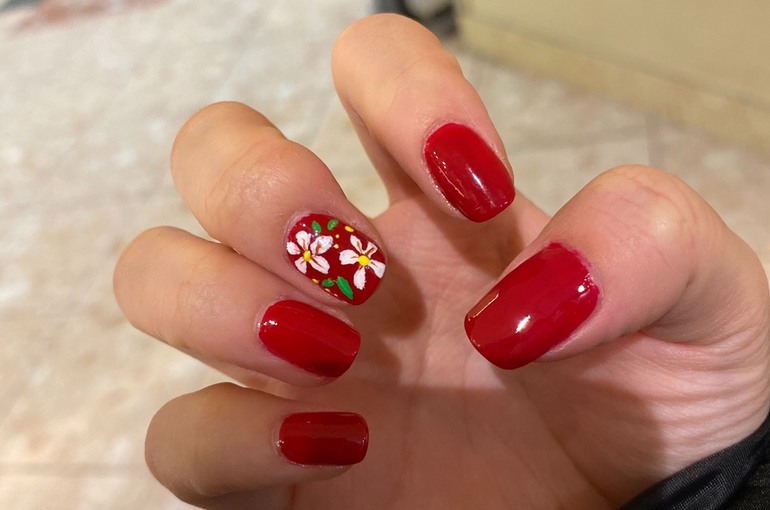 ネイル検定3級の練習 まだお花なに描くか模索中 自分の手だから左手 ネイル検定3級 ネイル検定 ネイル検定3級アート ネイル Nail ネイルアート Selfnail セルフネイル 赤 Red さくら 桜 マニキュア ポリッシュ アクリルガッ ネイル ネイル 検定