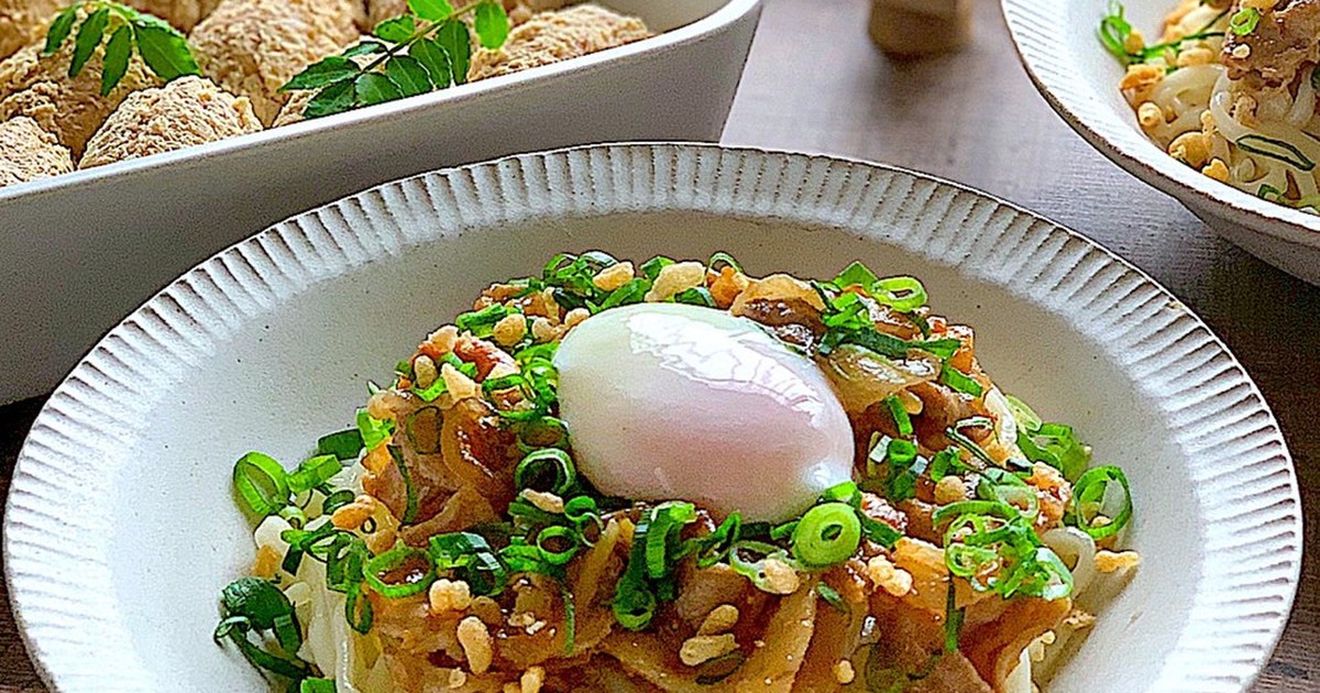 うまい 甘辛豚肉のせ冷やしうどん レシピ 作り方 By ゆうママs クックパッド